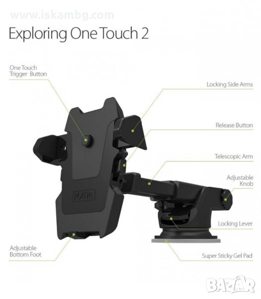 Универсална стойка за мобилни устройства с удължено рамо за по-добра видимост. Поставката е съвместима с всички модели телефони с размери от 5.5см. до 8см.