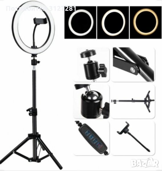 LED ринг лампа на 10 инча/26см със 1 поставка на телефон и трипод 2.1М - 29.99лв