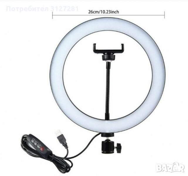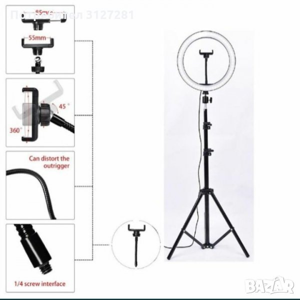 LED ринг лампа на 10 инча/26см със 1 поставка на телефон и трипод 2.1М - 29.99лв