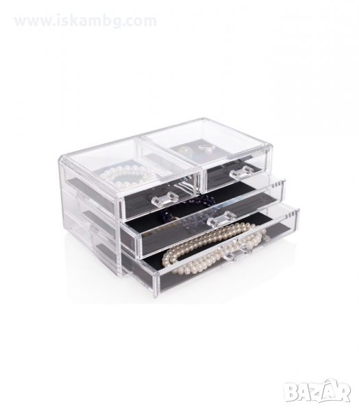 Настолен органайзер за бижута с чекмеджета от прозрачен акрил