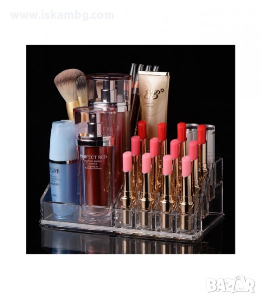 Прозрачна поставка за козметика и гримове с 16 прегради