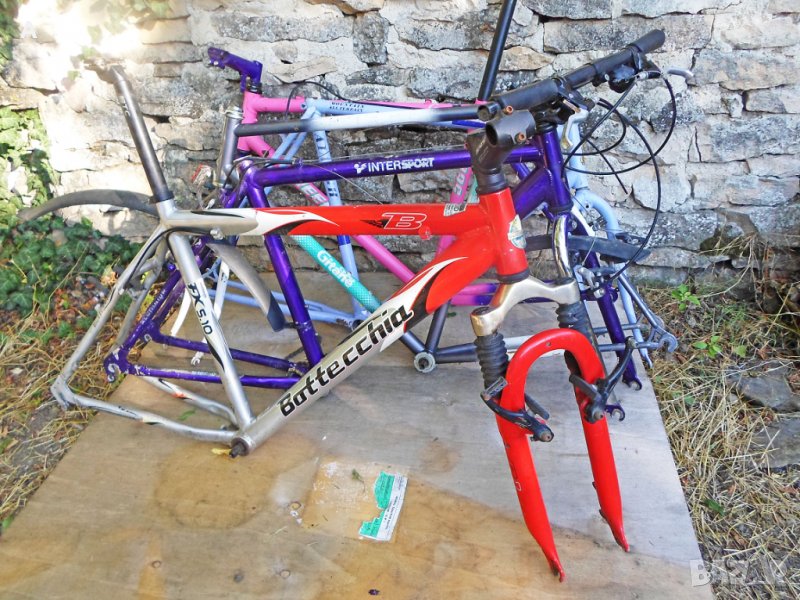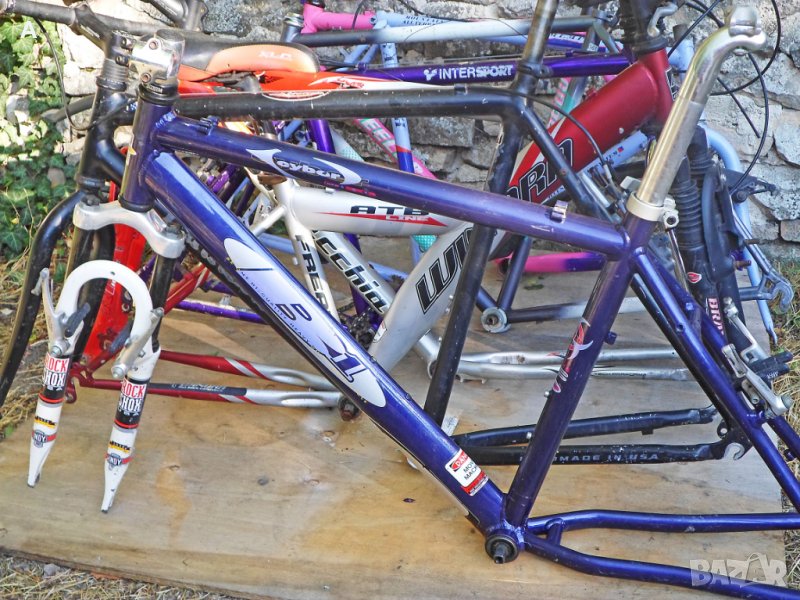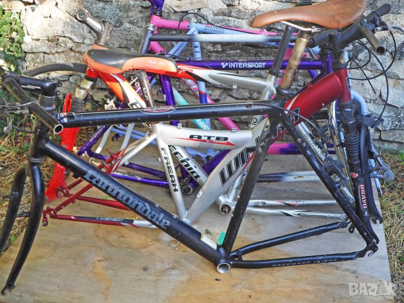 Рамки от велосипеди 26 цола .Продават се с окомплектовката от снимките. При интерес пращам допълнителни снимки. Cannondale,mod.3.0 aluminium,46 cm, 90 лв/Продадена/.Be One Cyber,RockShox XC,48 cm,150 лв.Cannondale,56 cm,190 лв.//Продадена//Winora Freak*Zoom,38 cm,50 лв/стоманена/.Bottechia FX,Zoom,48 cm,120 лв.Intersport ,48 cm,3*7 Shimano ,60 лв/алуминиева рамка стоманена вилка//Продадена//.Gitane,56 cm,30 лв.Raleigh Memphis,54 cm,30 лв.//Продадена//Wheeler 5600,48 cm,60 лв.