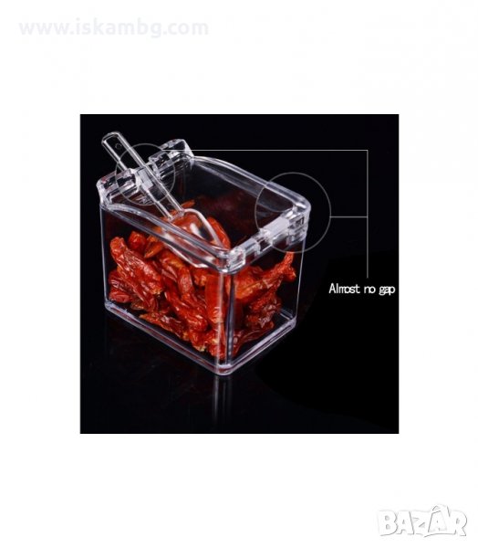 Подредете любимите си ароматни подправки в кутийката за подправки, така че винаги да са ви под ръка в кухнята! Съхранявайте удобно, свежи и сухи подправки, семена и ядки, дори сос и дресинг! Прозрачен корпус за по-голямо удобство! Подходяща за всяка кухня – у дома, на вилата или дори в караваната! Тъй като кутийката е многофункционална, може да й намерите всякакво приложение в дома, като например кутийка за копчета и карфици, за мъниста, панделки, кабърчета и каквото друго ви хрумне! Удобна и подходяща за всяко домакинство!