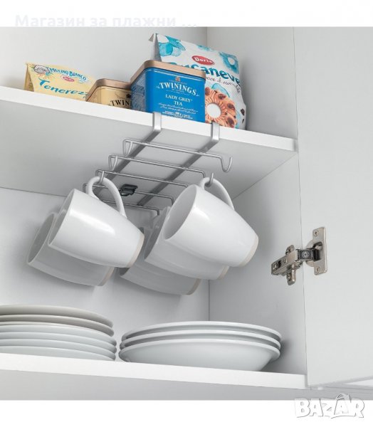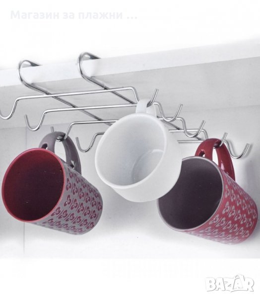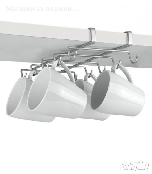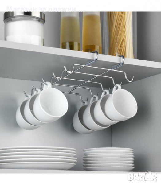 Метална закачалка за чаши и кухненски прибори пригодена за закачане за кухненски шкаф. Висящ органайзер за чаши за кафе, чай или други чаши с дръжка.