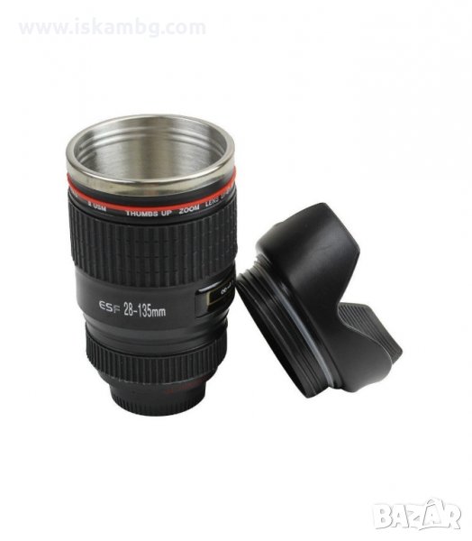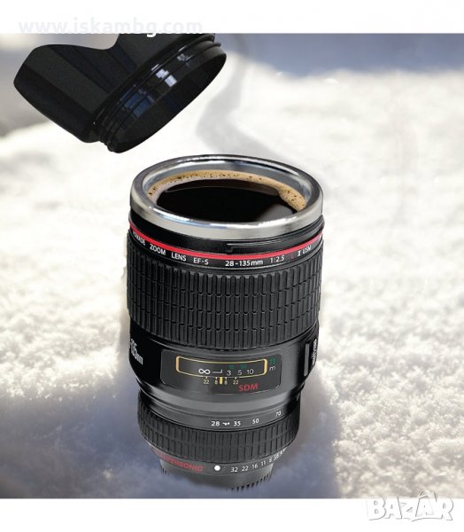 Доставете истинско удоволствие на себе си с пиенето на сутрешното кафе от термо чаша обектив Canon. Дори една оригинална термос чаша е достатъчна, за да подобри настроението Ви с различния си уникален дизайн. Термос чашата е реалистична и наподобява истински обектив Canon EF-S 17-55 mm. Изработката е наистина впечатляваща!