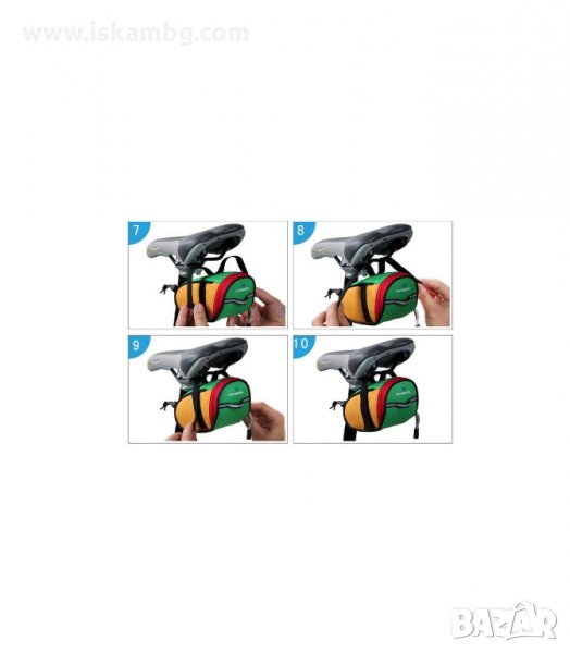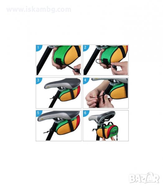 Практичен аксесоар за всеки колоездач. Тази чантичка ще побере всичко необходимо, така че да Ви бъде под ръка при необходимост - Ваш верен приятел. Монтира се бързо и лесно с помощта на щипка, която се захваща с два болта за седалката (Всичко необходимо е включено в комплекта).