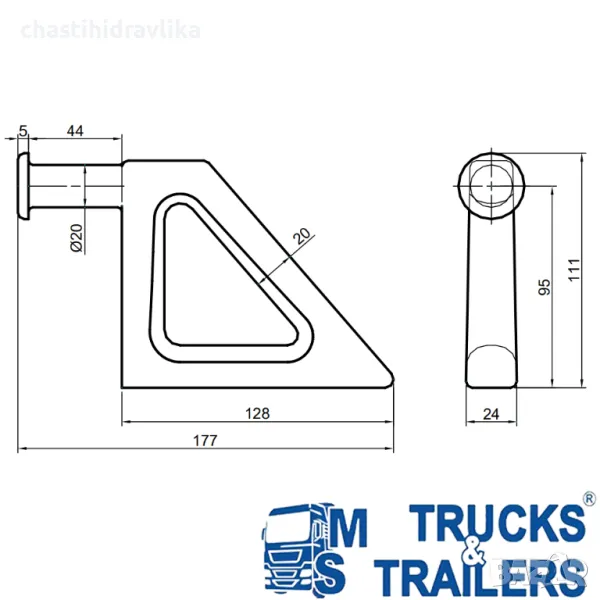 Горна панта за заден капак 10250101 + 10249100 Ø20mm