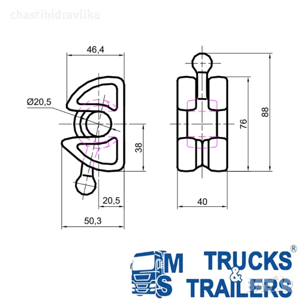 Горна панта за заден капак 10250101 + 10249100 Ø20mm → Обява 33998853