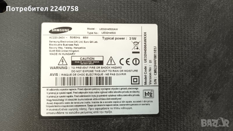 Samsung UE32H4500AW със счупен екран-Power Supply-BN44-00696A Панел CY-HH032AGLV2H