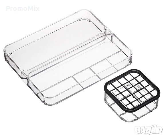 Комплекта съдържа голям органайзер с размер 25 / 20.5 / 3 сантиметра и малък органайзер със силиконова решетка с размер 10.5 / 10.5 / 5 сантиметра.