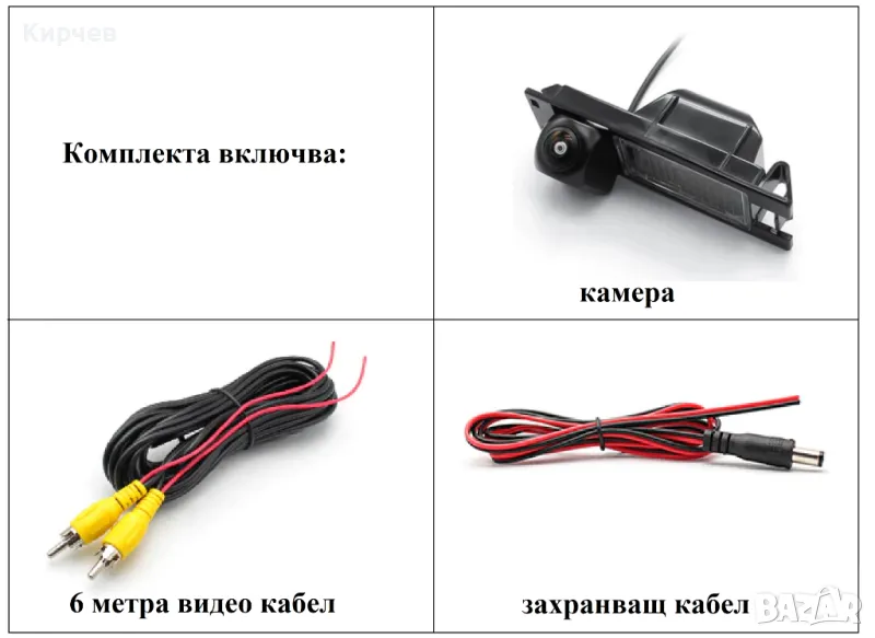 Камерата се поставя на мястото на плафона, и от там се свързва към ТВ или навигация.