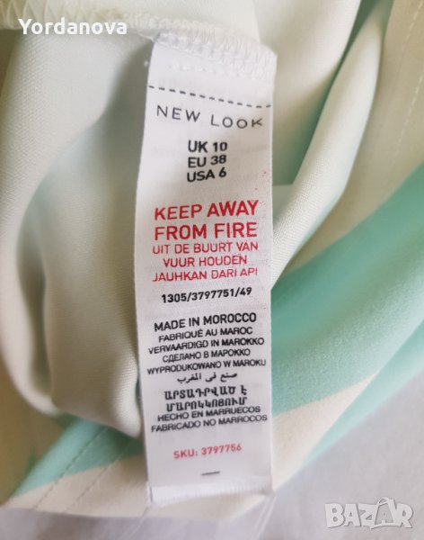 New Look Оригинала Дамска Рокля. Купувана от Англия. Обличана 1 път. Размер според английския стандарт 10 (S), но на мен ми става, въпреки че нося размер 12 (М). Материя - 97% полиестер + 3% еластан, а на подплатата - 100% полиестер. Машинно пране.