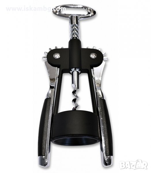 Тирбушон с винт и повдигащи се странични гумирани рамена за бързо и безпроблемно отваряне на всякакви бутилки с вино. Метален тирбушон с лостов механизъм. Перфектен за изваждане на коркови тапи от бутилки. В горният си край може да се използва и като отварачка на шишета с метални капачки.