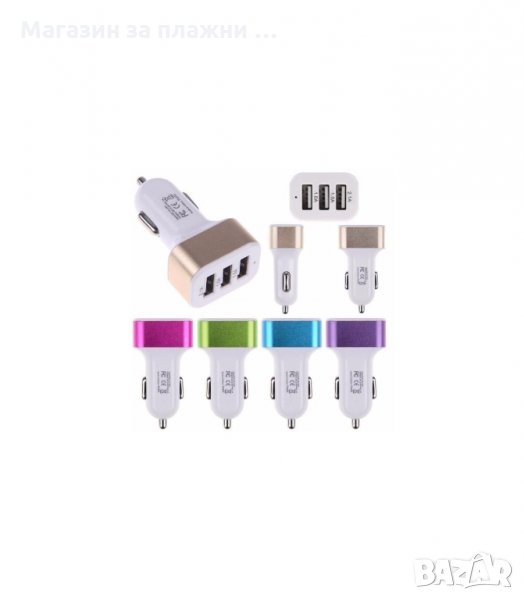 Троен USB разклонител за автомобилна запалка 2.1A 2A 1A