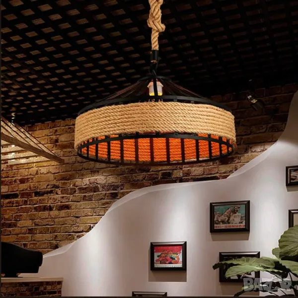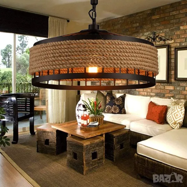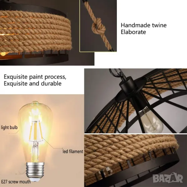 Конопено въже Индустриален стил Ретро лампа Висяща лампа Висящ тип Кръгла клетка Желязо E27 Полилей