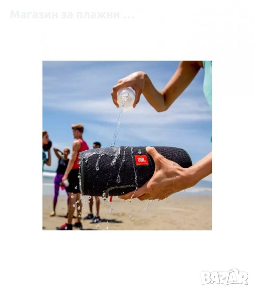 Лесно преносим, сложете презрамката и вземете с Вас музиката навсякъде. JBL Xtreme е усточив на влага и опръскване от вода, не е проблем да озвучите сутрините на море или вечерите на палатка!