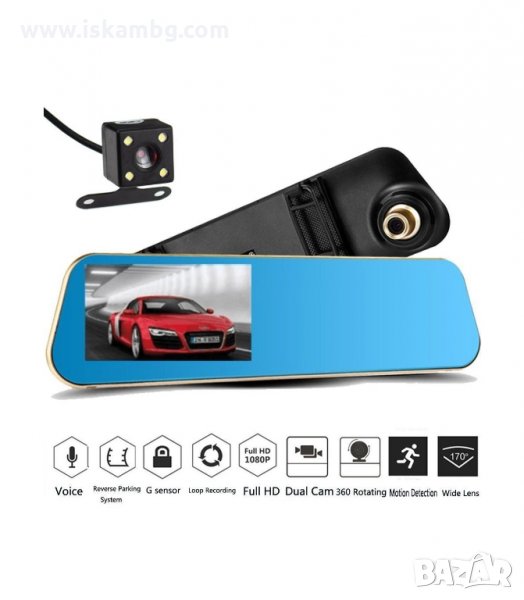 Видеорегистратор огледало, DVR Full HD + камера за задно виждане