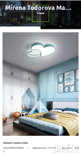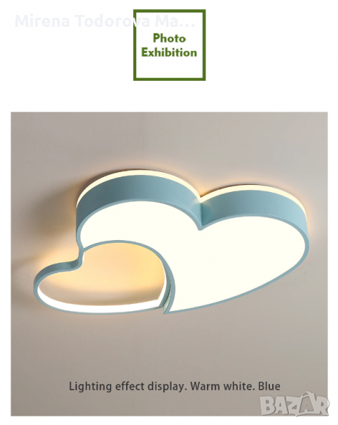 Полилей таванна лед LED лампа с дистанционно управление сърце син цвят