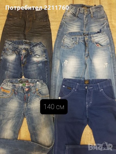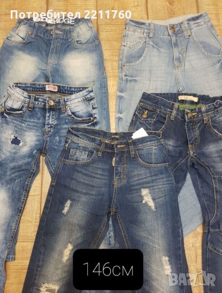 Детски дънки за възраст от 104 до 146см. Обличани са по един, два пъти, някои са нови. Цени от 10 до 20 лв в зависимост от модела.
