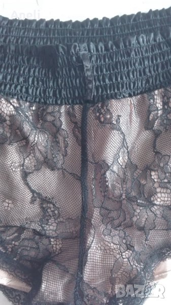 Страхотни къси панталонки, от два пласта - лек сатен и дантела. Много са ми широки в талията и затова не съм ги носила. Може да се сложи коланче. По етикет са размер М.