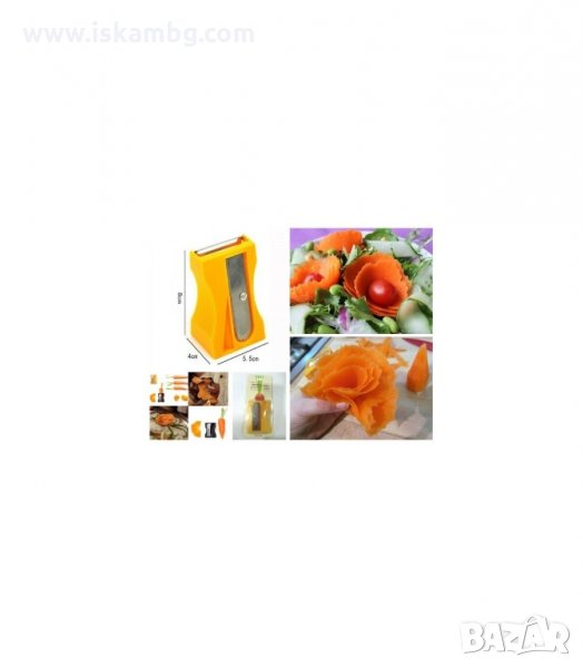 Острилка за моркови, краставици и всякакви твърди плодове и зеленчуци. Практичен уред за декорации на зеленчуци и плодове, за декориране на салати и ястия. С острилката може да режете зеленчуците на жулиени или спирали. Кухненски помощник за изрязване на различни формички от зеленчуци или плодове.