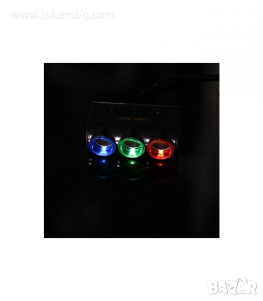 Троен разклонител за запалка с волтметър и USB