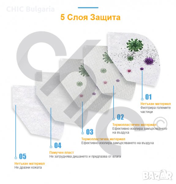 - Пет защитни слоя, които правят предпазната маска истински надеждна в защитата срещу вредни частици без тя да нарушава нормалното дишане.