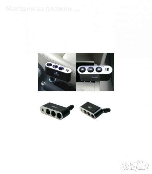 РАЗКЛОНИТЕЛ ЗА ЗАПАЛКА НА АВТОМОБИЛ С 3 ГНЕЗДА И USB