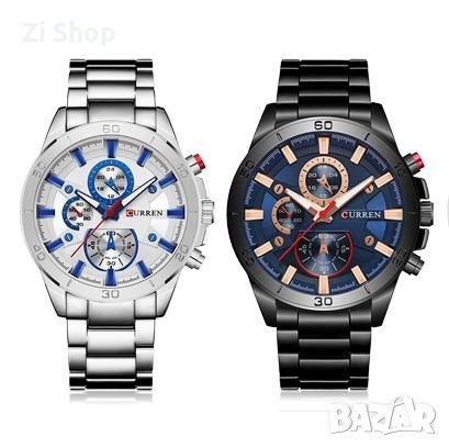 луксозен стилен мъжки часовник Curren, метална верижка, стрелки, батерия → Обява 34052387