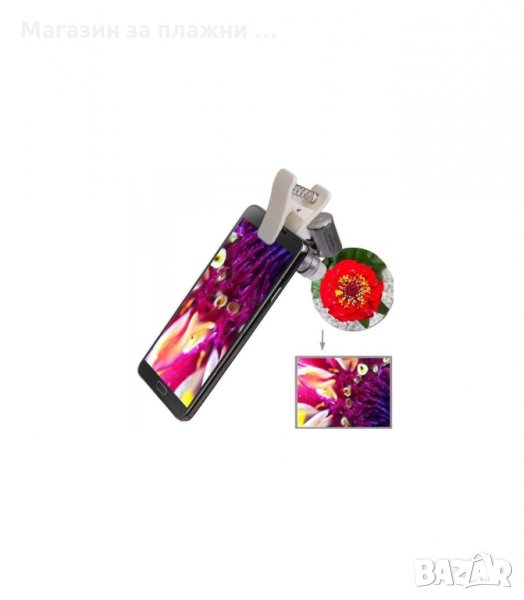 Микроскоп за мобилен телефон с увеличение 60X, макро обектив, регулиране на фокуса, LED осветление, UV светлина и възможност за демонтиране на щипката