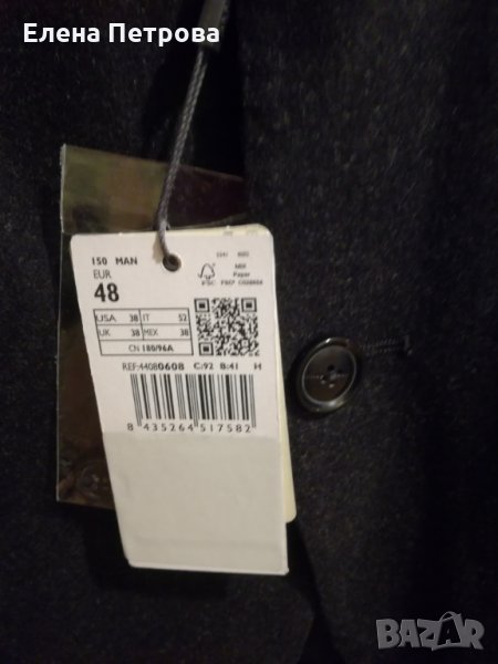 Сакото е страхотно, ново, на Манго, елегантно и топло, със 75% чиста вълна в състава. По етикет е ук 38, номер 48, ето и размери: