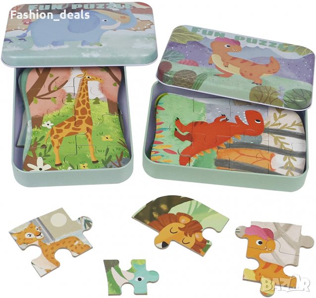Нов комплект пъзели в две железни кутии поотделно, много е удобен за съхранение и лесен за пренасяне.