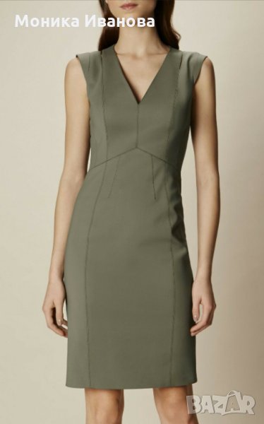 KAREN MILLEN, дамска секси рокля, размер UK10/US6/EU38, дължината е до коляното, малко обличана - в отлично състояние, цвят - маслено зелен khaky, модел 2021, вталена, пълна подплата, плат - 48% памук, 45% полиамид, 7% еластан, отзад с цип и с цепка, 100% оригинална. Изпращам до офис на Еконт - доставката ще струва около 5 лв.