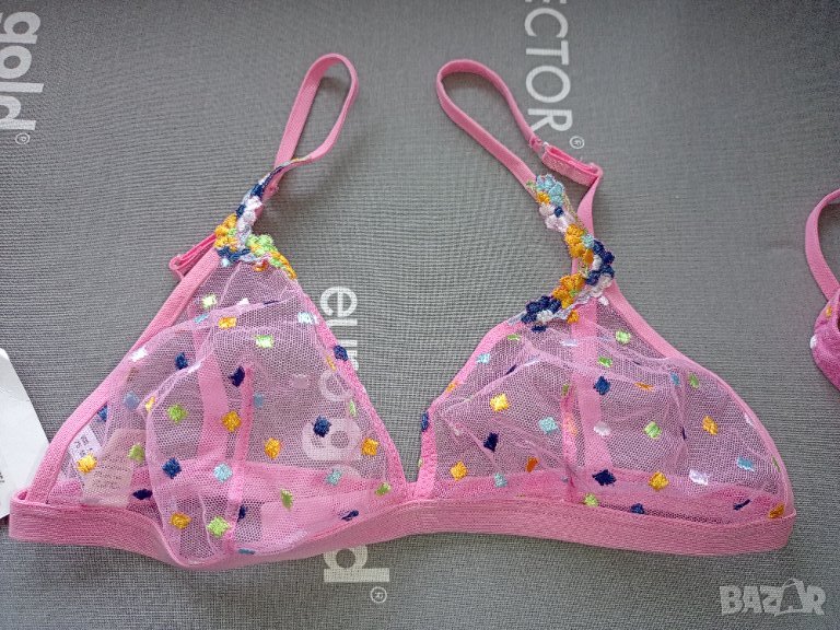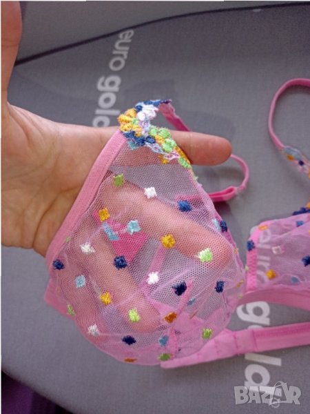 Прашките са L, Сутиенът М, 75, без подплънки и банели, само тюл и дантела.