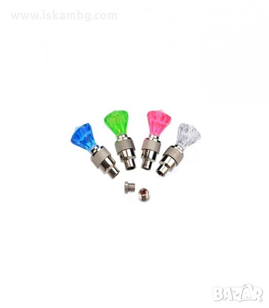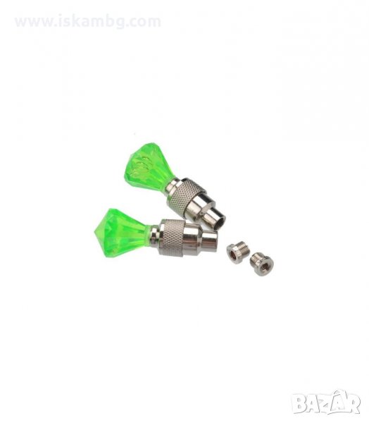 Комплект 2 светещи капачки за вентилите на автомобил, мотоциклет или велосипед с вградени светлини