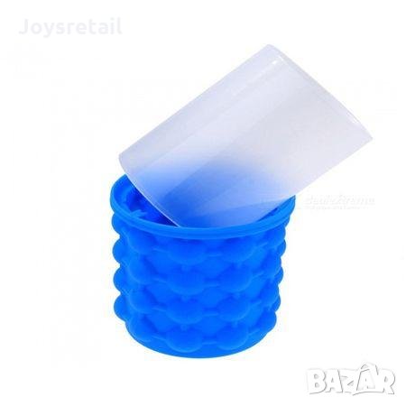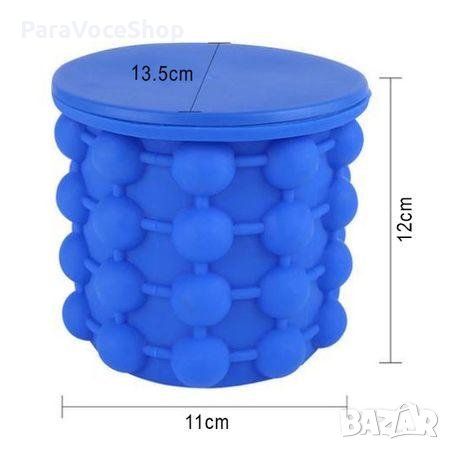 Силиконова ледарка за лед с капак, съд за охлаждане изстудяване на напитки, силиконова форма за лед сфера. Държач за напитки с компакен размер, не заема много място във фризера. Иновативна ледарка и форма за лед 2 в 1. Идеална за охлаждане на бутилки с любимата напитка, сладолед, вода и всичко, което се сетите. Използването й е много лесно - напълнете стените с вода, оставете във фризера и готово - след 2-3 часа имате кубчета лед. Извадете пластмасовия съд, стиснете силиконовата форма с ръце, за да се отделят кубчетата лед от стените на ледарката. Размери: 12x11см; диаметър: 13.5см Материал: силикон, пластмаса