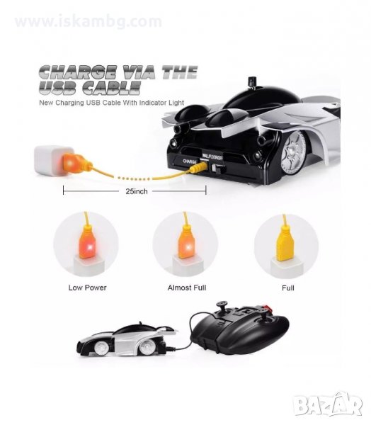Когато получите тази кола вървяща по стени и тавани вече нищо не може да Ви спре, защото тази кола е като повечето автоматични коли с дистанционно управление разликата тук, обаче е много съществена и тя е, че тази кола вървяща по стени и тавани със същата лекота, стабилност и бързина, както и върху пода. С нея забавлението ще е много по-голямо! Тази кола ще Ви позволи да премините през всякакви територии и граници. А ако искате да се състезавате с вашите приятели, познайте кой ще е победителят. С нейните възможност определено ще смаете всички. Благодарение на най-новите технологчни системи, тя може да се върти и движи буквално на всяка стена и таван във вашия дом!