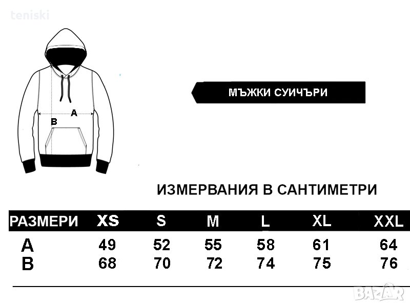 С подплатена качулка,два джоба тип кенгуру,ластик на ръкавите и кръста.