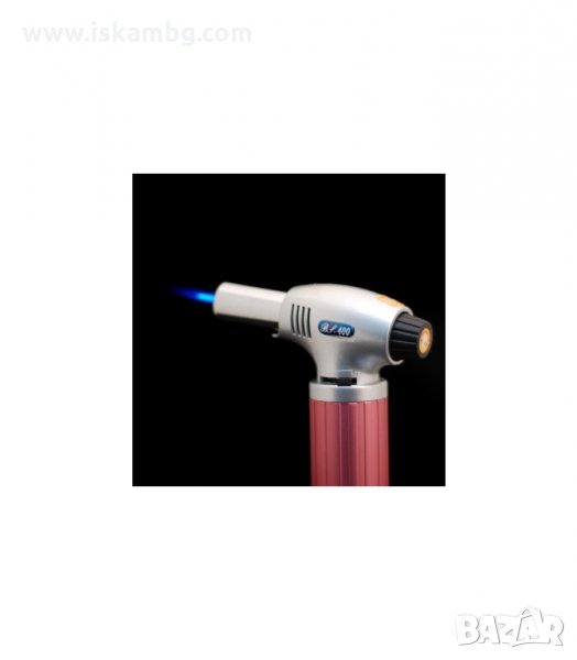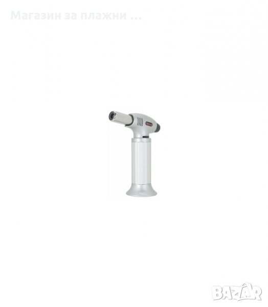 Гумирана дръжка за по-лесна и приятна употреба. Комплекта също включва и поставка. Компактна и удобна с предпазител за деликатни и фини дейности, пиезо запалване. Горелката е компактна и удобна с предпазител за деликатни и фини дейности. Предлага се незаредена за безопасност при транспортиране. Размери-101*30*115mm.