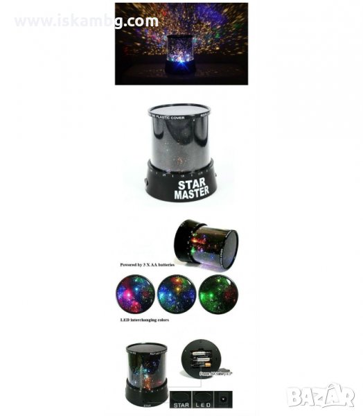 Star Master пресъздава небосвода посредством 1+3 лампички (LED диода) които можете да активирате поединично или заедно за постигане на максимален ефект : различни цветове – ярко червено, ярко зелено с натискане на LED бутон, мек кехлибар – звезди с натискане на STAR или комбинация в режим натиснати и двата бутона