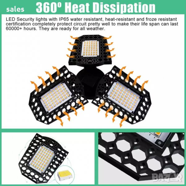 ✔️ВИСОКА ЕФЕКТИВНОСТ: Мощтната LED сгъваема лампа 45W е енергоспестяваща с висока яркост, ниска консумация, генерира ниска топлина и не се нагрява, дълъг живот, устойчива на корозия. Усъвършенстваната система за охлаждане, дизайнът на Abs ускорява разсейването на топлината което я прави безопастна за използване в търговско помищениа, както и за промишлено осветление, лампа за работни магазини,гаражи, тавански помещения, и др..