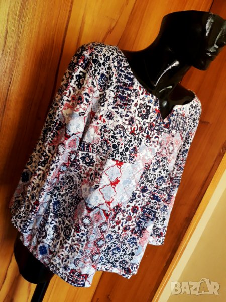 Синьо-червена блуза с декорация камъчета ХЛ → Обява 34079717