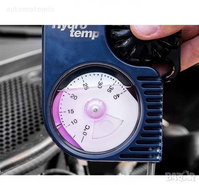 Употребата е много проста : задръжте тънката тръба в охладителната течност, изтеглете течността в измервателната камера с практичната смукателна топка и въртящата се скала ще ви покаже точната температура, до която вашият антифриз не замръзва.