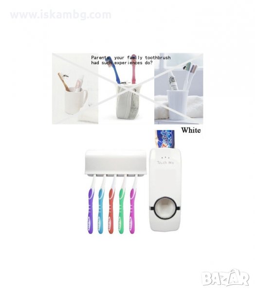 Практичен комплект за баня - автоматичен дозатор за паста за зъби и държач за четки