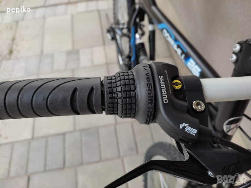 НОВ мтв велосипед DOWNHILL AVIGO 26 цола,супер здрава метална рамка STEEL26 цола с 18 скорости,фиксирани превключватели SHIMANO SL-RS TOURNEY 3 х 6,алуминиеви курбели,пластмасови педали,преден отклонител SHIMANO TOURNEY,заден отклонител SHIMANO TOURNEY,задни венци POWER,предна и задна емайлирани черни главини,спортна седалка на релси,лапа на кормилото FRC,бяло емайлирано кормило,алуминиеви лостчета на спирачките,преден амортисьор ZOOM,заден амортисьор с пружина,алуминиеви вибрейк спирачки,алуминиеви стандартни капли,никелирани спици,гуми със спортен грайфер КЕНДА 26 х 1,95,размер на рамката 48 х 59 см.тегло 17,9 кг.много добър велосипед.