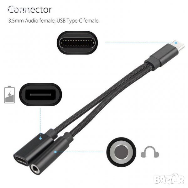 Трансферът е по -бърз и по удобен.Конектор A: 3,5 мм аудио женски; USB тип-C женски