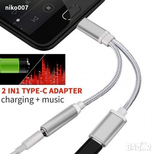 Тип C адаптер 2 в 1 сплитер адаптер за Honor 20 Pro аудио AUX адаптер за Huawei P30 P20 Mate20 Pro N