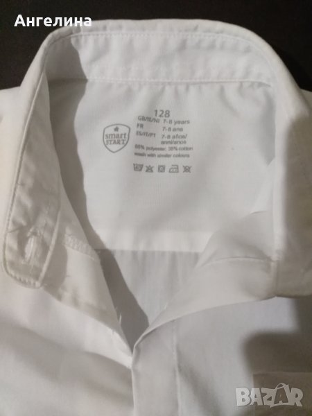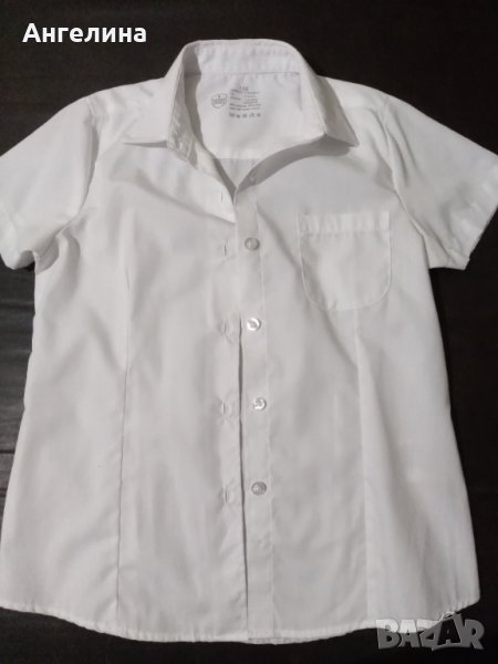 Бяла риза с къс ръкав подходяща за училище. Размер 128 - 7/8 години. Наличен един броя, цената е за брой.