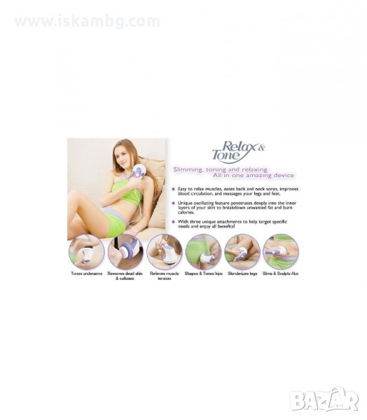 Изгорете бързо и лесно излишните калории, премахнете неприятния целулит и бъдете във форма, благодарение на един уред - Relax & Spin Tone! Постигнете невиждани резултати за тялото си от комфорта на Вашия дом и бъдете ослепителни! Карайте хората да се обръщат след Вас, гордо разхождайки перфектното си тяло навън! С този уред ще изгорите бързо и лесно излишните калории, и ще се заредите с положителни емоции и самочувствие.