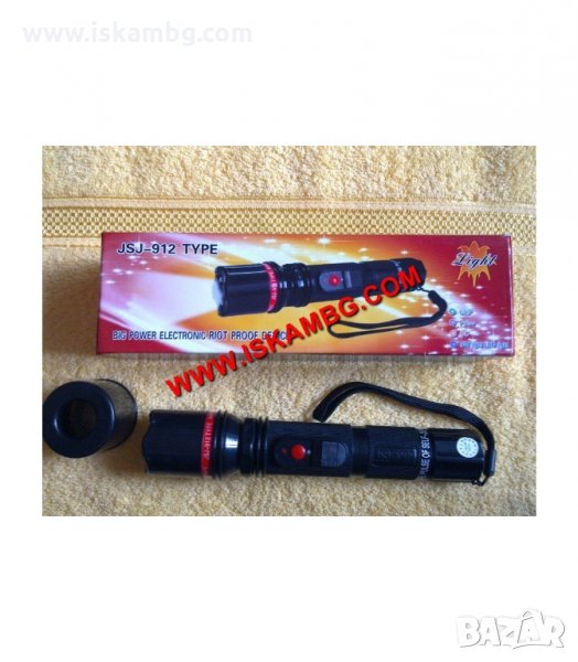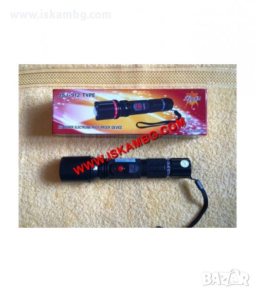 Eлектрошоков фенер Type: JSJ-912. Индивидуално средство за защита от нападение и мощен LED фенер. Уникалното при него е, че от напълно безобиден наглед фенер може за секунди да се превърне в мощно средство за отблъскване на нападение, което дава възможност на жертвата да нанесе неочаквано париращ удар на нападателя, с което да го неутрализира за известно време и да си даде възможност да избяга на безопасно разстояние.